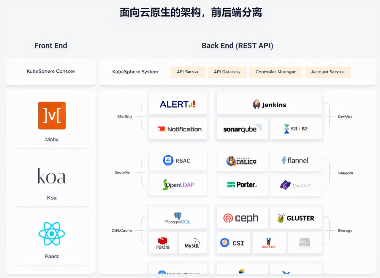 以KubeSphere为例,作为一个平台产品,KubeSphere基于容器和 K8s,为企业提供了一套自顶向下的 IT 管理标准,再加上中立的架构、不过度干涉业务等,KubeSphere几乎相当于一个云原生团队,可快速赋能企业,并帮助企业大幅降低云原生应用成本。