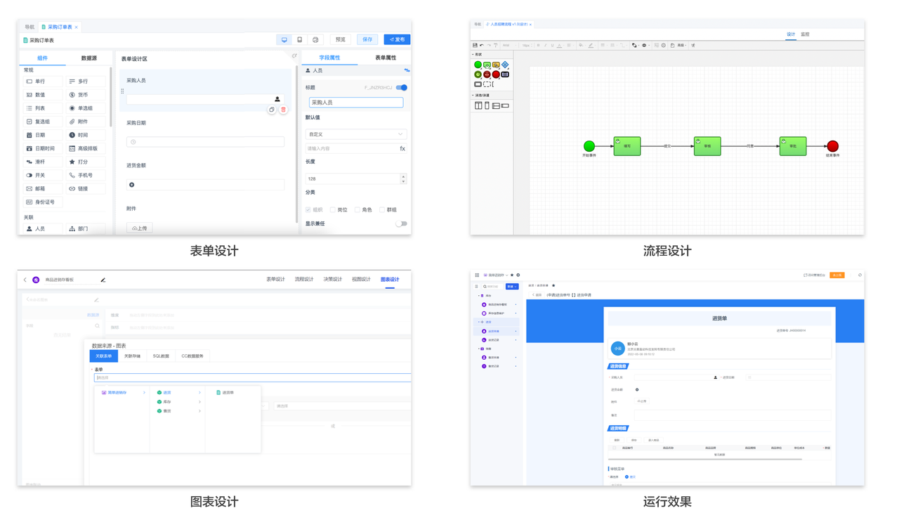 – 能力丰富:存储、表单、规则、流程、报表都可以自动生成