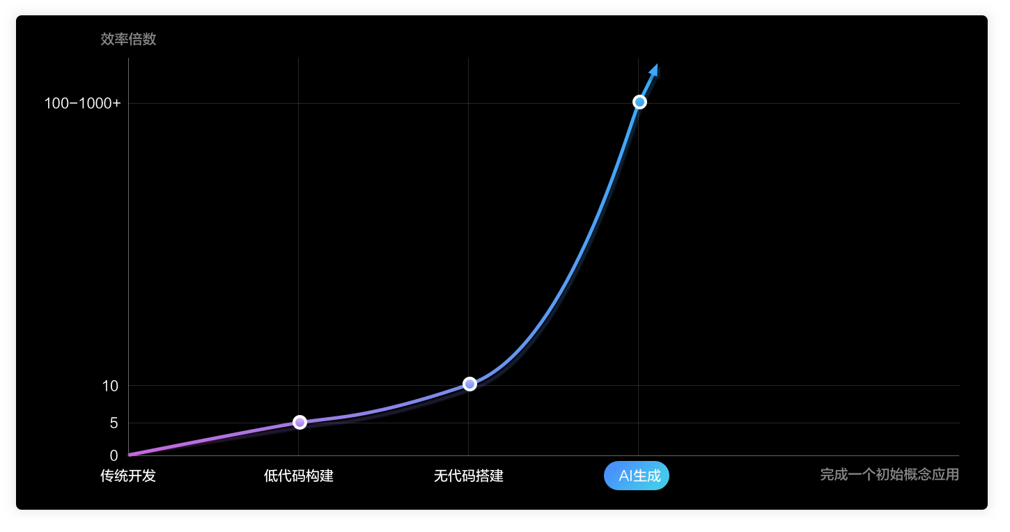 – 效率暴增:完成一个初始概念应用搭建,2到3个指数级的生产力提升